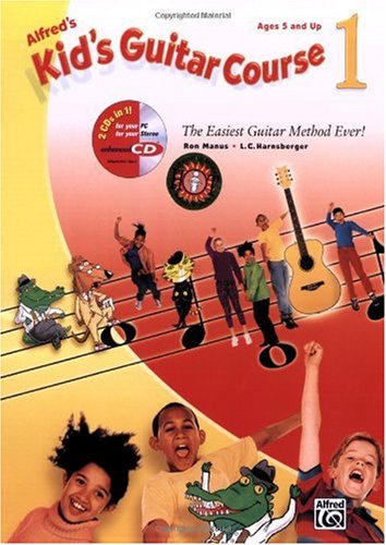 Alfred's new Kid's Guitar Course is the easiest method ever that teaches children to play songs on the guitar right away. This 48-page full-color book comes with an enhanced CD that always lets you hear how the music should sound, and each lesson on every colorful page is explained in plain language that's easy to understand. Plus, you get to learn from three irresistable guitar experts-a clever classical dog, one cool jazz cat, and a friendly alligator who loves the blues. They keep your attention focused by pointing out what's important on each page and help you learn by making music fun! When the enhanced CD is played on a computer, additional tools are available, including a chord dictionary and a guitar tuner. You can see and hear the music, adjust the tempo of songs, and even record yourself playing with a band!